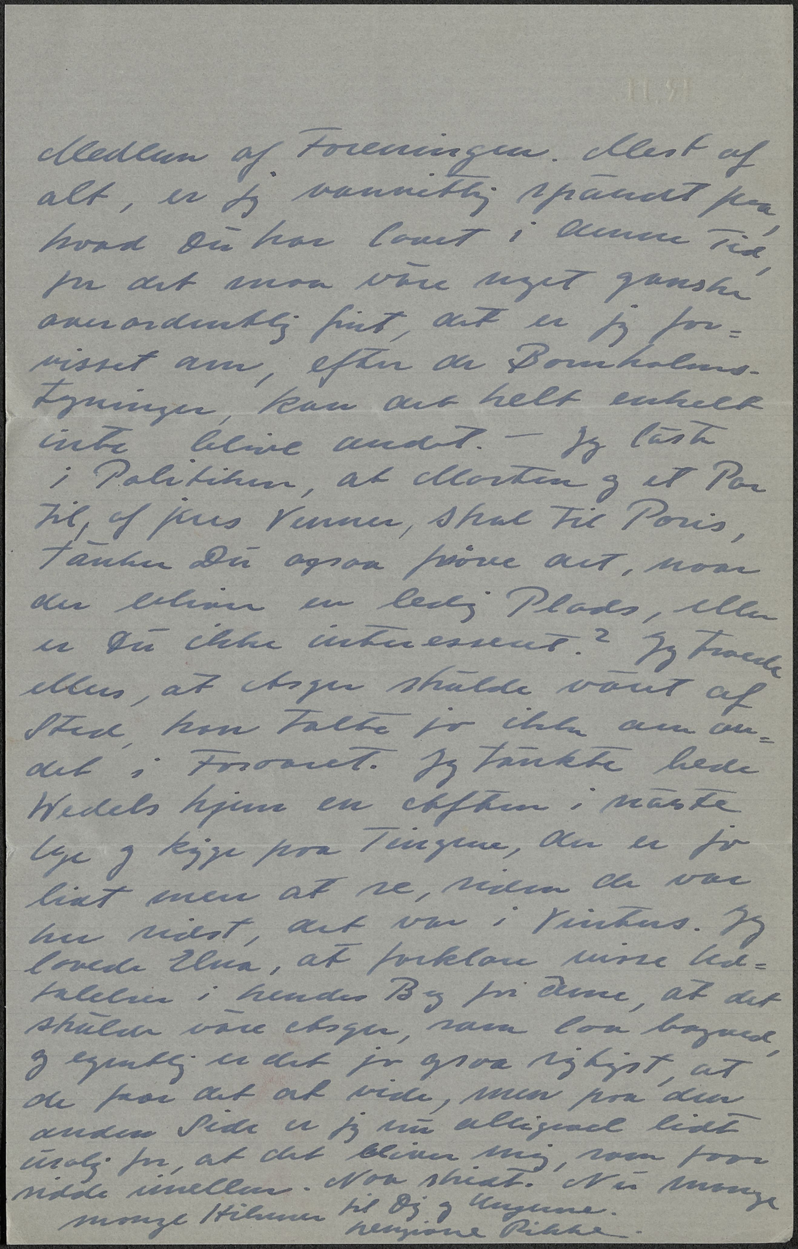 Tak skal Du have for Dit rare Brev. Det var södt af Dig at skrive, jeg synes altid, at det er saa hygge-ligt at höre lidt om, hvad Du har for Dig. Ja, jeg er virkelig glad over jeres Billeder, ikke bare dem, jeg ejer selv. Du spörger, hvordan jeg kunne holde ud og bo hos jer. Käreste, jeg nöd det. Du skal tänke, hvilken afkobling, det var for mig, at for en Tid befinde mig i en anden Milieou, og föle mig fri. Og alt som var at se, jeg gik gennem jeres Billed fraan borde to og tre Gange, saa Else til sidst var helt udmattet. Jeg haaber ikke, at Du har noget imod det? Du skal tänke, jeg har jo ikke så ofte Lejlighed at se jeres Ting, saa jeg maatte jo passe paa Tilfäldet.