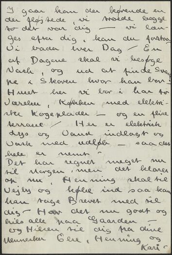 Det har regnet meget nu til Morgen, men det klare op nu, Henning skal til Vejby og købe ind saa kan han tage Brevet med til dig – Hav det nu godt og hils alle på Gaarden –