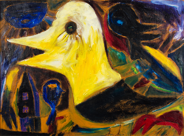 Værket der omtales i brevet er med al sandsynlighed "Den gule fugl" 1943, der er i samlingen på KUNSTEN, Aalborg.