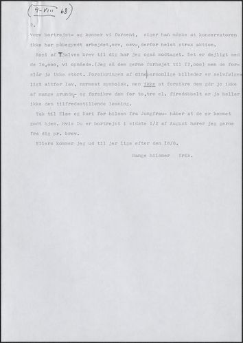 Bjarnhof kan med lethed ordne og gøre billedet i stand til forsvarlig forsendelse. Da det vitterligt spiller en meget stor rolle for Arkus at få billedet med, syntes jeg at vi må gøre en indsats på den rigtige måde. Vi kan jo spekulere lidt over det og eventuelt gå i samlet procession til ham, når jeg kommer hjem (den 18/VIII), men da er I måske i Jylland?
