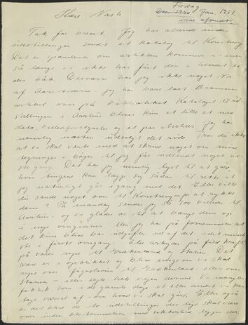 Brevet er dateret af Carl-Henning Pedersen til Fredag i Januar 1951. Brevet var først dateret til december 1950, men hvor det ikke kom afsted. Vi ved der er tale om en fredag i januar og det er sandsynligt at Carl-Henning Pedersen tager tråden op i brevet den første fredag i januar, hvorfor brevet dateres til d. 5. januar 1951.